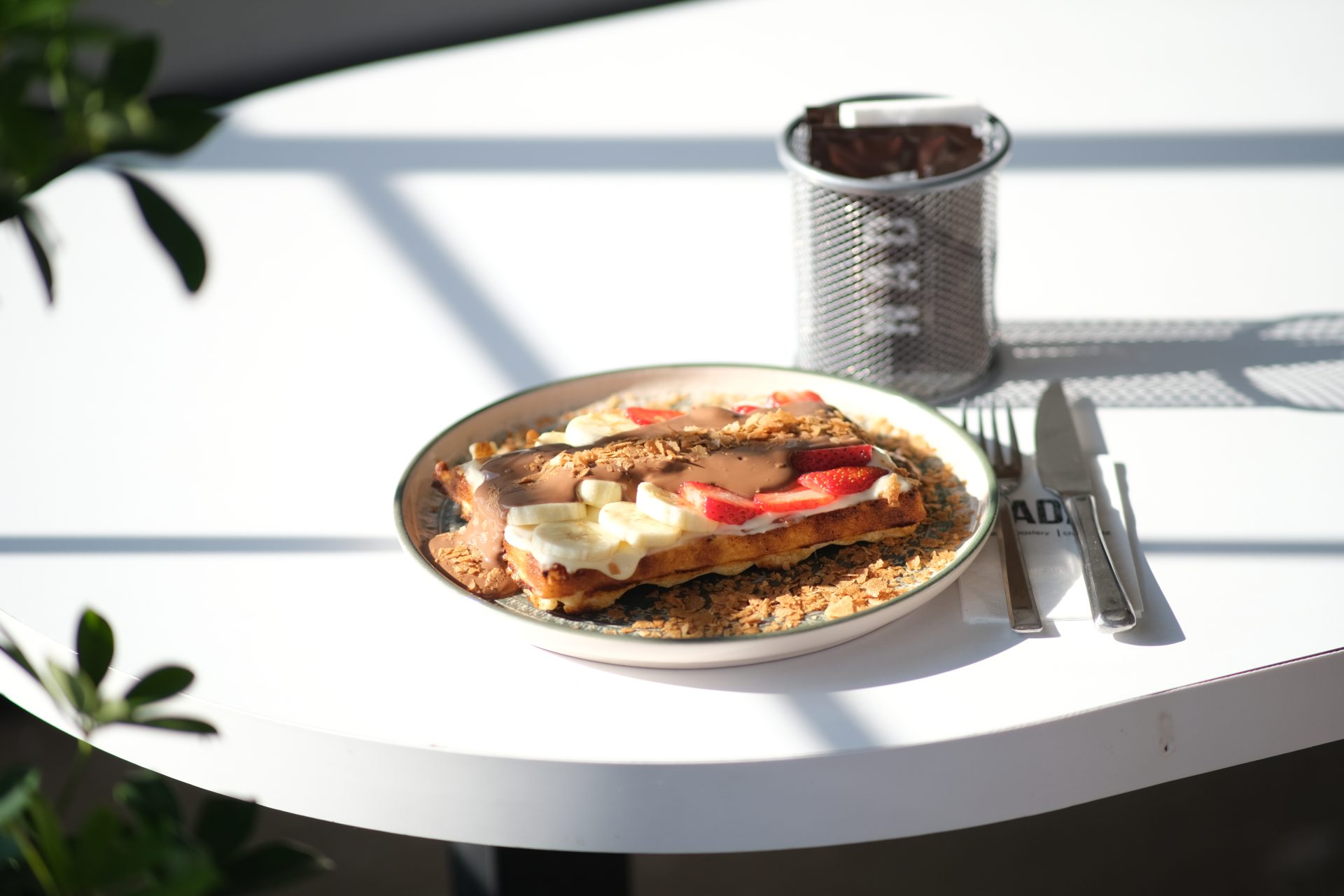 waffle hamuru üzerine prenses krema, çilek muz çikolata krep kırığı