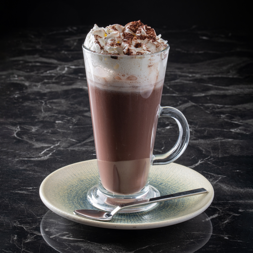 double espresso, belçika çikolatası süt ve süt kreması yanında mini cookie