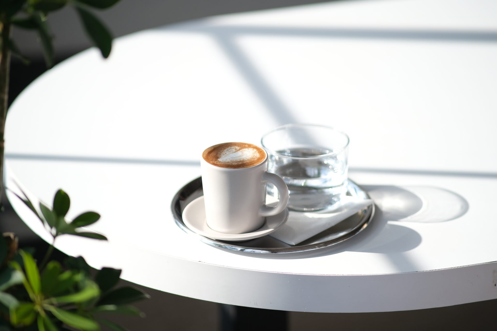 double espresso beyaz çikolata süt ve süt kreması yanında mini cookie